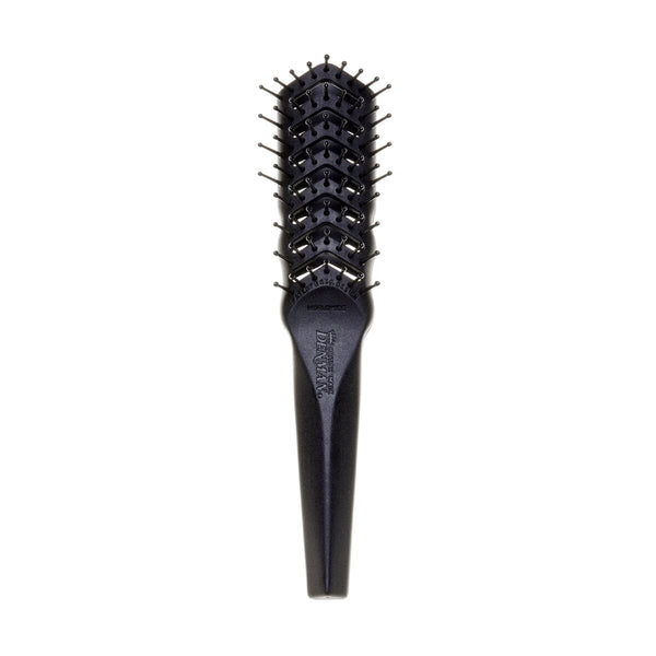 The Denman Tunnel Vent Brush can help speed up your blow-drying routine. Warm air is circulated directly to the root level, allowing for quick and gentle drying. It offers a secure grip and control to detangle all hair lengths and types without causing snags.