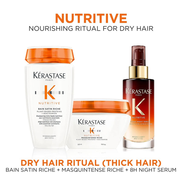 The Kérastase Nutritive range, a nourishing care designed to make hair supple and irresistibly soft to the touch, targets dry hair symptoms at the core with a custom routine for three levels of dryness.