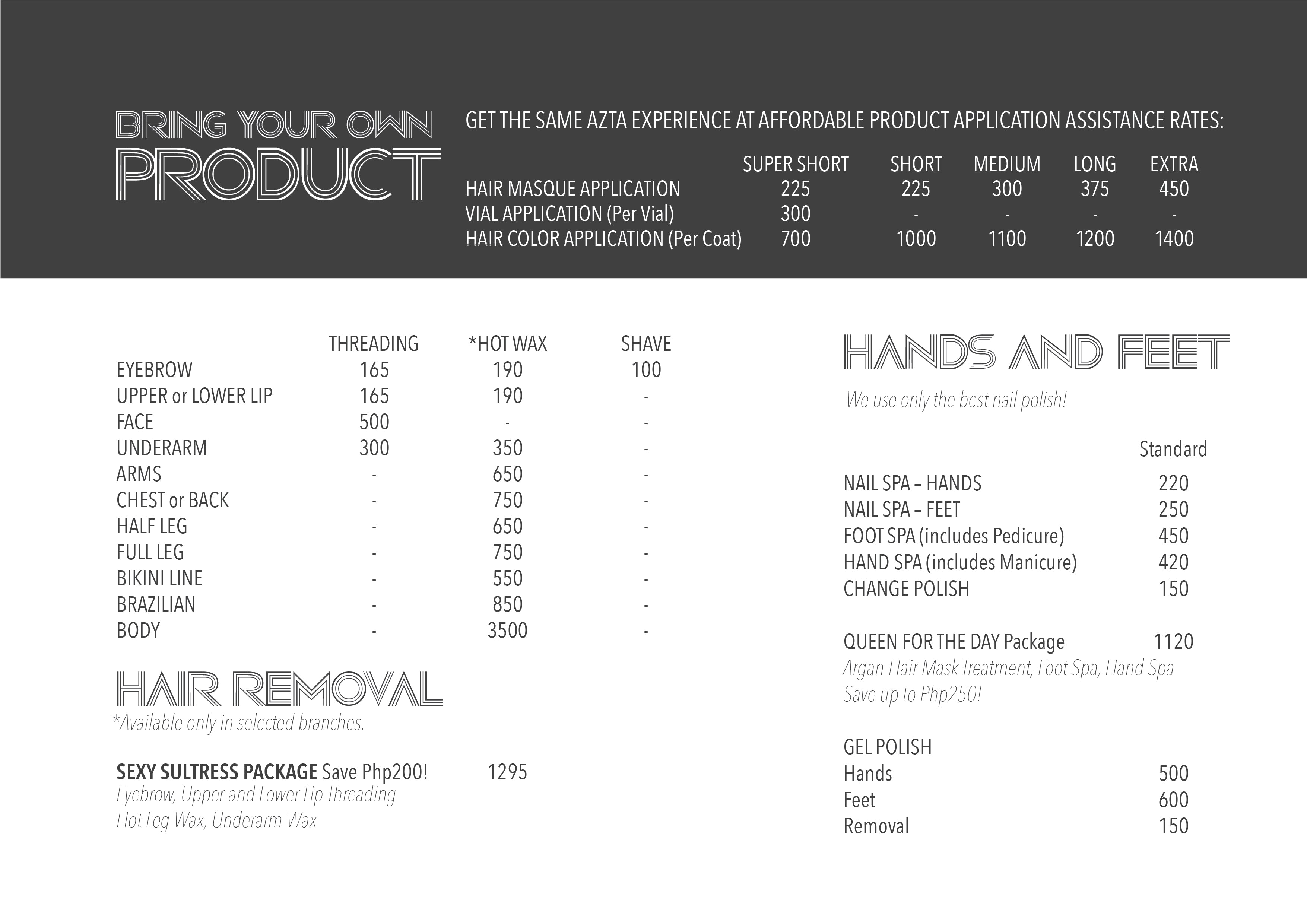 Azta Urban Salon Service Menu