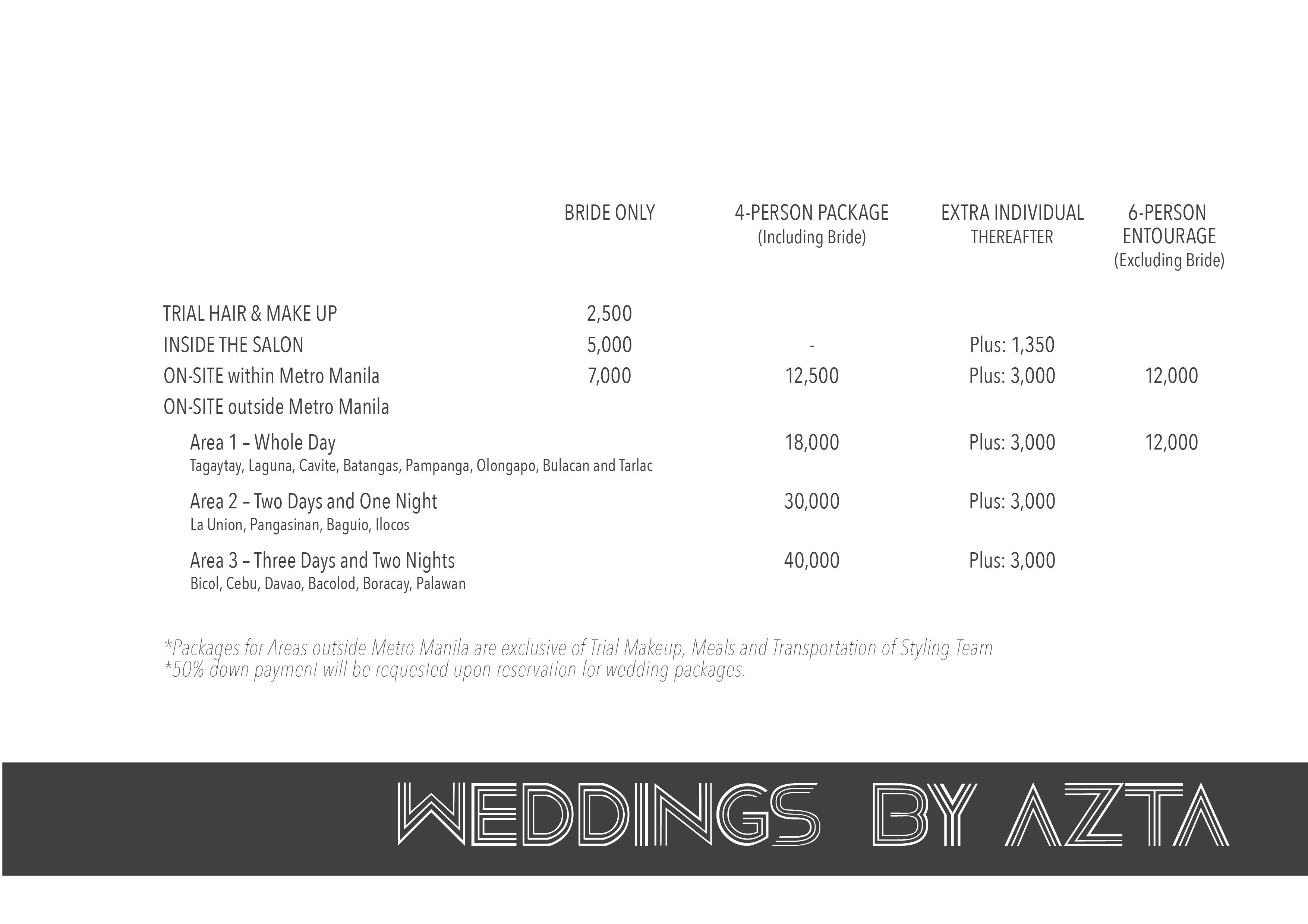 Azta Urban Salon Service Menu