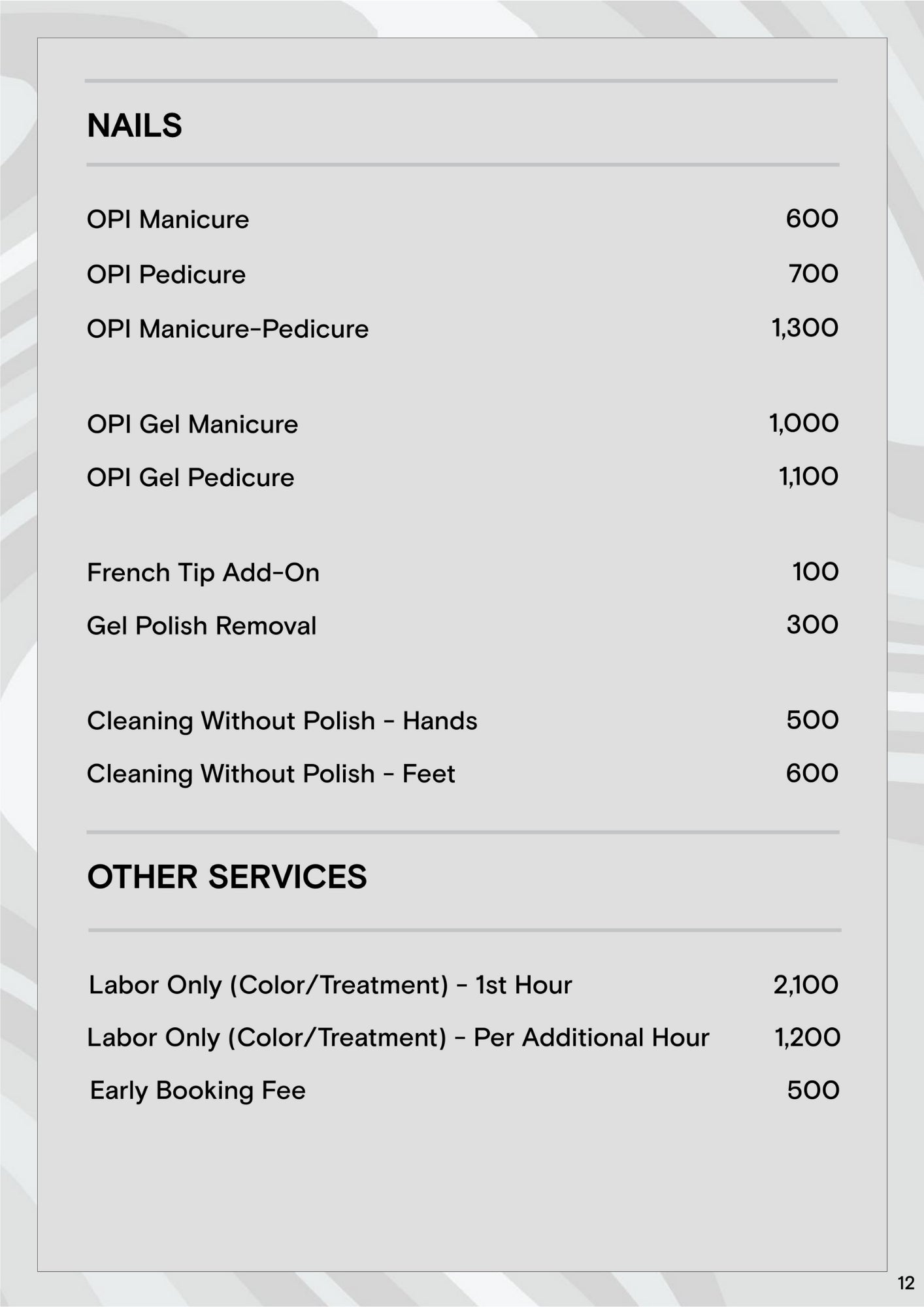 Menu of Services